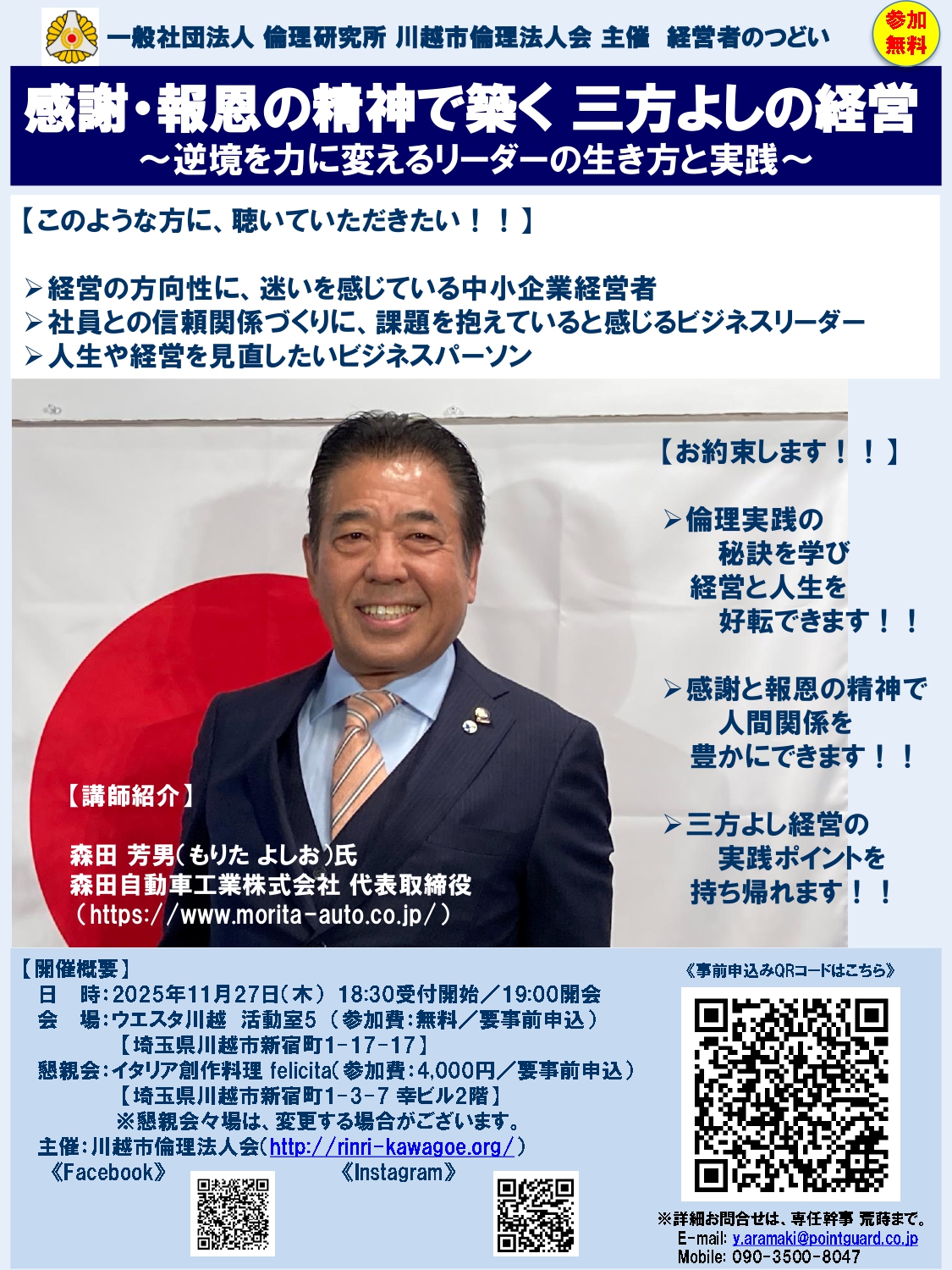 | 25日(金) | 一般社団法人倫理研究所 法人スーパーバイザー 浅野 洋一 |
